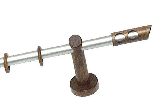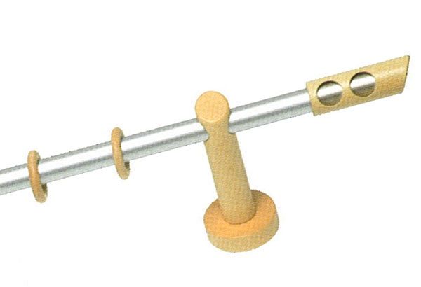 Gardinenstange mit Ringen mit einem Durchmesser von 20 mm. Die Garnitur besteht aus einer Holz - Aluminium Kombination und wird Ihnen komplett mit Zubehör (Rohr, Endstücke, Träger, Ringe und Befestigungszubehör) geliefert.